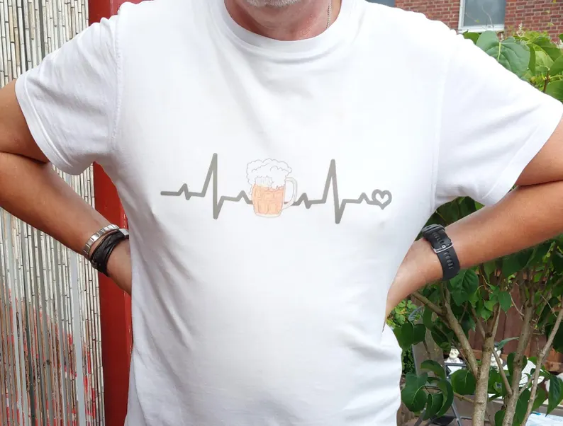 T-Shirt Bier EKG Spruch weiß